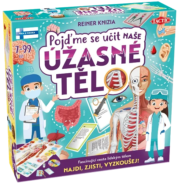 První hráč, který dorazí do cíle, se stane doktorem! Pohybujte svou figurkou po herním plánu, odpovídejte na zábavné otázky o lidském těle a o tom, jak funguje, a sami si vyzkoušejte různé pohyby. Úspěšné zvládnutí úkolů vás posune vpřed na cestě k tomu, abyste se stali doktorem, ale ostatní hráči se budou snažit být ještě rychlejší než vy!